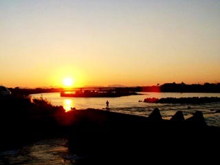 原発反対のメンバーが川辺川を視察。八代に着いた当日球磨川河口は美しい夕焼けとなった。 人吉のダム反対メンバーのお宅で素晴らしい川辺川の天然鮎の塩焼きをごちそうになった。こんな良い場所をコンクリートの要塞のようにするのはとんでもない事だ。