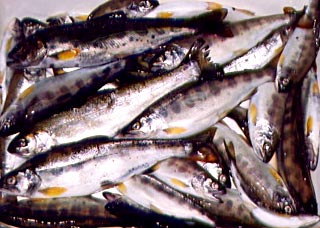 山口県美川町ムーンバレーの前を流れる根笠川ここには以前よりかなりの数のサツキマスが遡上していた。大きなものは50-60センチもあったということである。しかし最近は護岸工事の影響などからその数も減ってきたという話しも聞かれる。この川に沿った道路の拡張が計画されているがこの川の景観とよい環境を守ってほしいものである。観光業も自然を生かした観光にシフトしなければいけない時代になってきているのではなかろうか。(何かサツキマスに関する情報をお持ちのかたは御連絡下さい)
