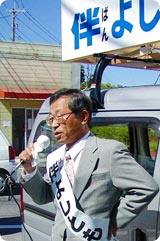 山口県周南市の議会解散による市会議員選挙の告示が6月13日に行われ、小中さんは市議候補の伴よしともさん(無所属みどりの会議推薦)の出陣式に応援に駆けつけた。 今回小中さんが反原発を掲げて当選した時、困難な選挙戦を応援した、ただ一人の旧熊毛町議がこの伴さんである。見識 行動力 勤勉さ などにおいて今回の周南市議出直し選挙候補者の中では筆頭に上げられる人であろう。